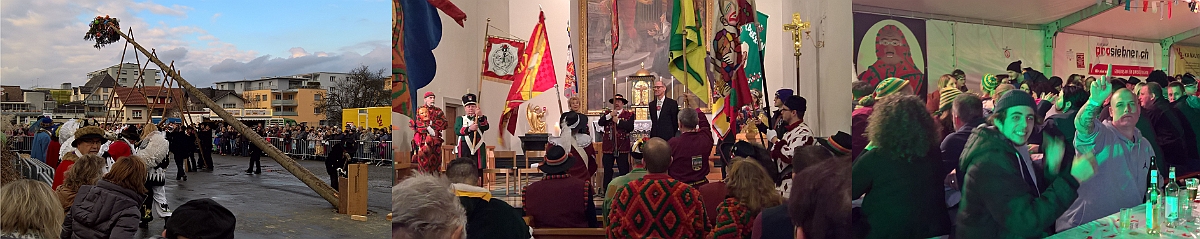 Siebnen_Landschaftstreffen Bodensee-Linzgau-Schweiz 2018, Narrenbaumstellen (Narrenzunft Messkirch D), Fahnenweihe, Närrische Nacht, Organisator: Röllizunft Siebnen
