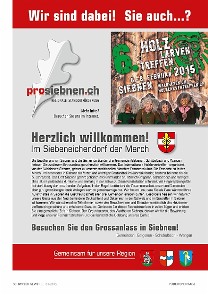 Gemeinsame Publireportage im «SCHWYZER GEWERBE» mit den Gemeinden Galgenen, Schübelbach, Wangen.